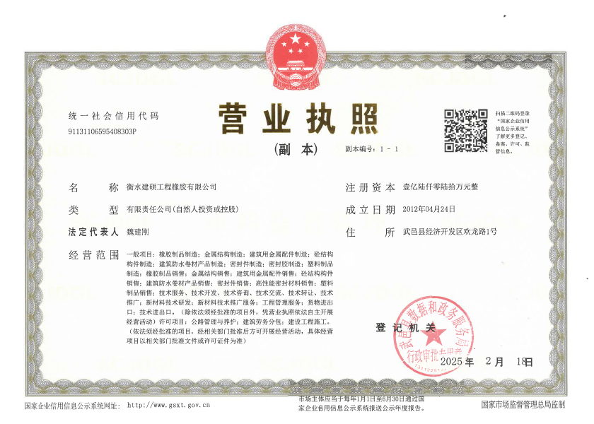 衡水建碩工程橡膠有限公司座落于衡水市濱湖新區(qū),占地面積50000平方米,注冊(cè)資金壹億零捌拾萬(wàn)元整,是生產(chǎn)橡膠支座、盆式支座、充氣芯模、伸縮裝置、止水帶的專業(yè)廠家。公司始建于九十年代,經(jīng)過近二十年的發(fā)展壯大,現(xiàn)有員工300多人,其中高級(jí)技術(shù)人員45人,高級(jí)技工103人。